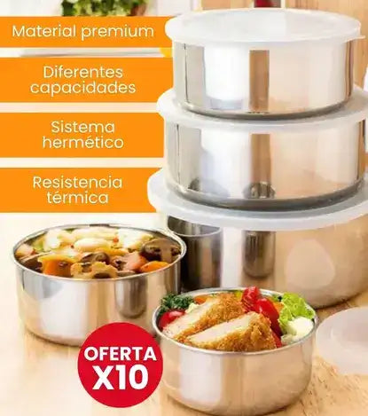 🍎 Set de 10 recipientes herméticos ideales para preparar, servir, almacenar o llevar tus comidas donde quieras