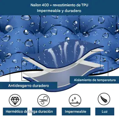 Esta colchoneta para dormir ultraligera y compacta está hecha de nailon resistente y tela de TPU, es impermeable y resistente al desgarro: ideal para aventuras en cualquier clima.