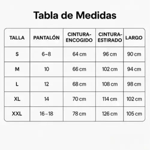 Puedes consultar nuestra tabla de tallas para encontrar la opción que mejor se ajuste a tu cuerpo. Si tienes dudas, no dudes en contactarnos y te ayudaremos a elegir la talla ideal.