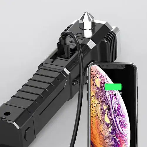 Ampliamente utilizado: el lado izquierdo de la linterna está equipado con un martillo de seguridad de aleación de alta dureza, y el lado derecho de la cabeza está equipado con un cuchillo. Se puede utilizar para escapar en caso de emergencia.