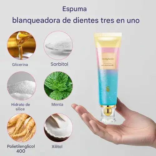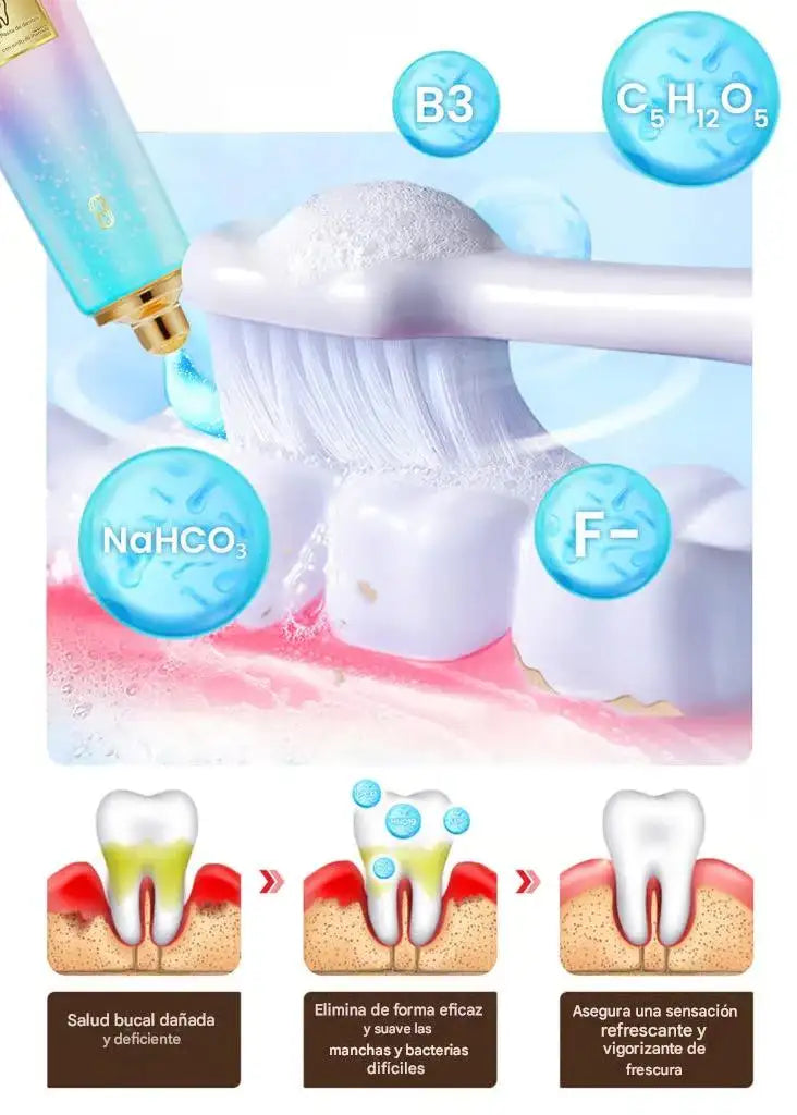 - Niacinamida : Blanquea naturalmente los dientes y alivia la inflamación de las encías.