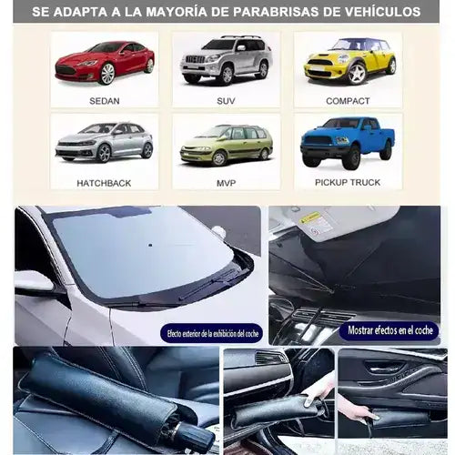 Este parasol es compatible con una variedad de vehículos, incluidos SUV, hatchbacks, minicamionetas, y furgonetas.