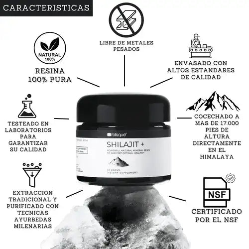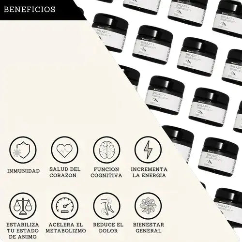 Es una resina mineral natural que se obtiene de las rocas del Himalaya, conocida por sus propiedades beneficiosas para la salud.