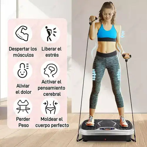 Con el VibraFit, disfrutarás de relajación, tonificación, mejora de circulación y energía, todo desde casa. VibraFit transforma tu cuerpo y bienestar en solo minutos al día.