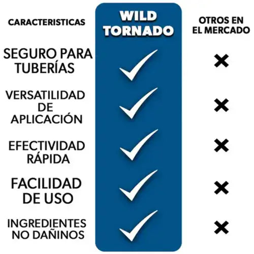 Soluciona el problema rápidamente con WildTornado, el desatascador fácil de usar para mantener tus tuberías limpias y en buen estado.